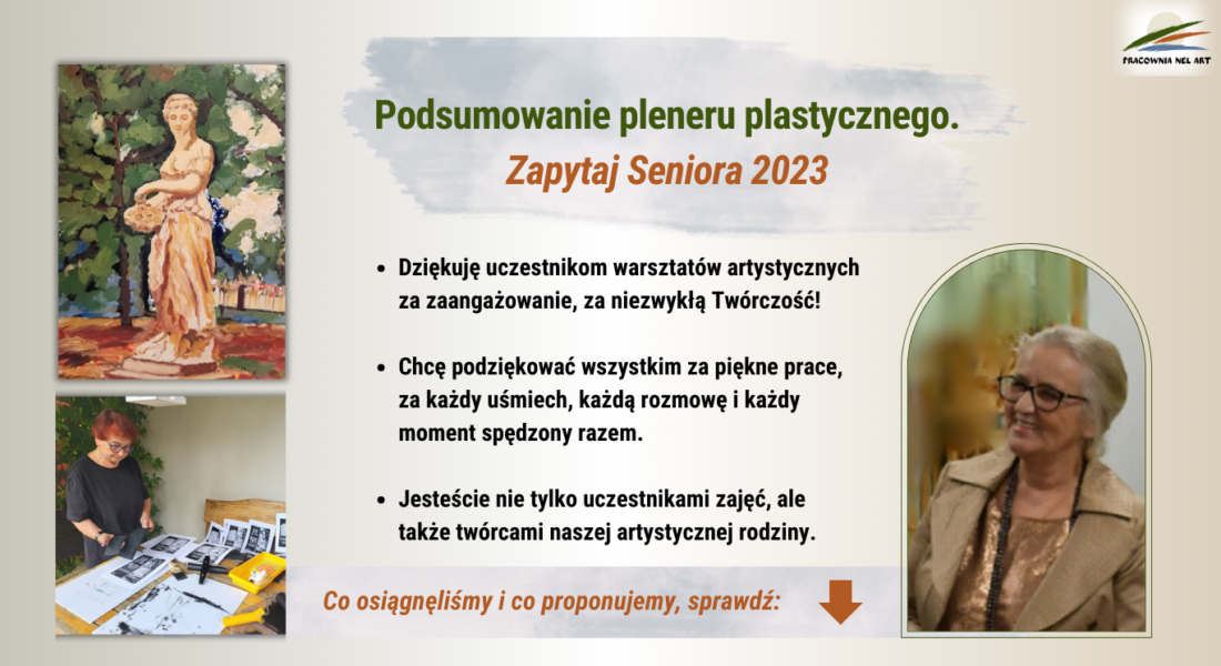 Nieoceniona jest również wartość edukacyjna Waszego udziału. Dzielenie się wiedzą, umiejętnościami i życiowym doświadczeniem z młodszymi pokoleniami, które miały okazję uczestniczyć w otwarciu wystawy i w prezentacji prac na Starej Plebanii, to bezcenny wkład w rozwój społeczności lokalnej i promocję sztuki. Byliście Państwo wspaniałymi mentorami i przewodnikami, inspirującymi do odkrywania piękna otaczającego nas świata przez pryzmat sztuki.